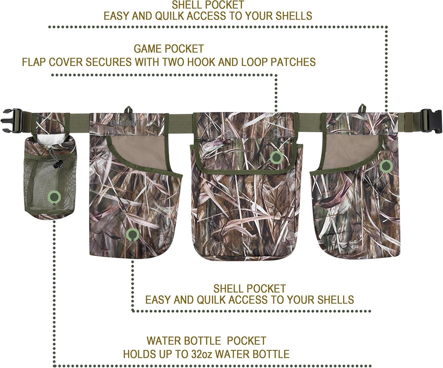 QOGIR Dove Belt Game Bag: Hunting Bags with Game Pouch Shell Bags Water Bottle Carrier, Adjustable Field and Game Belt, Breathable Shooting Belt, Dove Hunting Gear, Dove Hunting Accessories(Green)