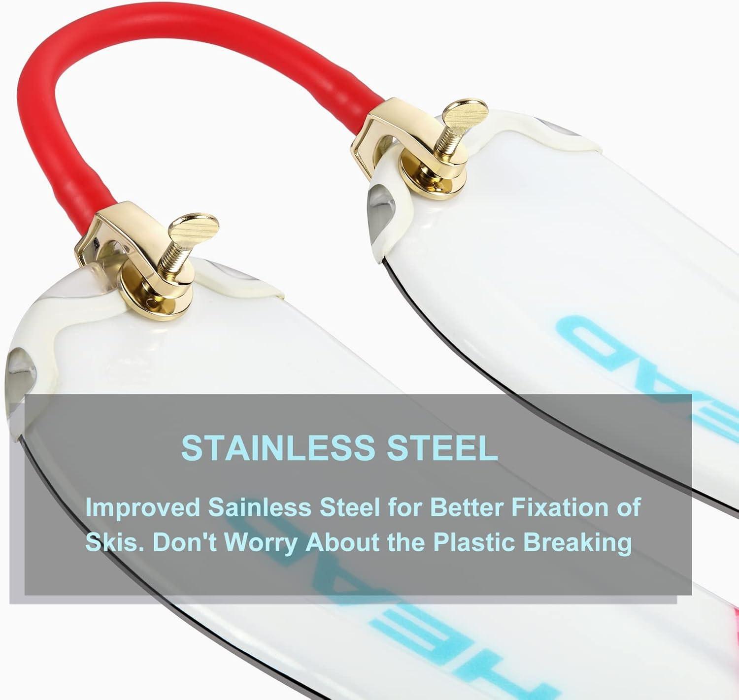 QOGIR Durable Ski Tip Connector with Stainless Steel Head: Learn to Ski with Ski Training Tip Connector, Portable Ski Training Aid to Teaches Speed Control, Perfect for Beginners(Red)